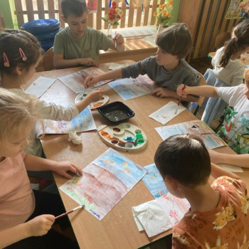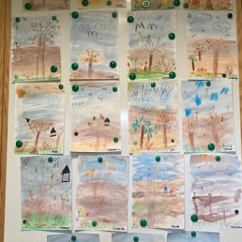 Zachęcanie do działań plastycznych inspirowanych pogodą jesienną - obserwacja natury. Utrwalanie kolorów jesiennych. Łączenie znanych technik: rysowanie i malowanie. Zapoznanie z nową techniką mokre na mokrym, malowanie rozwodnioną farbą listopadowej szarugi według własnych pomysłów. Zwrócenie uwagi na posługiwanie się kredką, pędzelkiem, estetykę pracy, rozplanowanie pracy na kartce.
