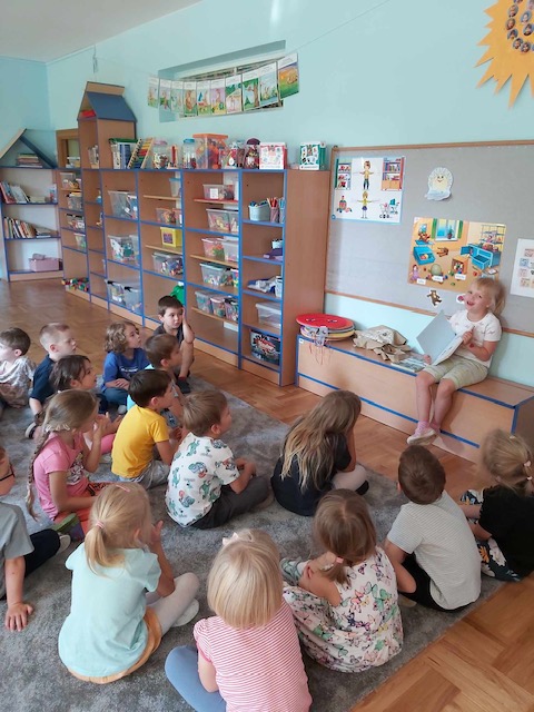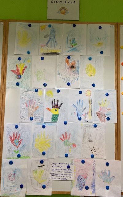 Jesteśmy grupą dzieci sześcioletnich, nazywamy się SŁONECZKA. Dobrze czujemy się w przedszkolu, do którego uczęszczamy już czwarty rok. Pełnimy funkcję prawdziwych gospodarzy – dbamy o swoje przedszkole i pomagamy młodszym koleżankom i kolegom. Zdobywamy wiedzę i nowe umiejętności podczas zabaw i zajęć przedszkolnych. Uczymy się zgodnego współdziałania w zespole, poznajemy literki, próbujemy czytać i liczyć.