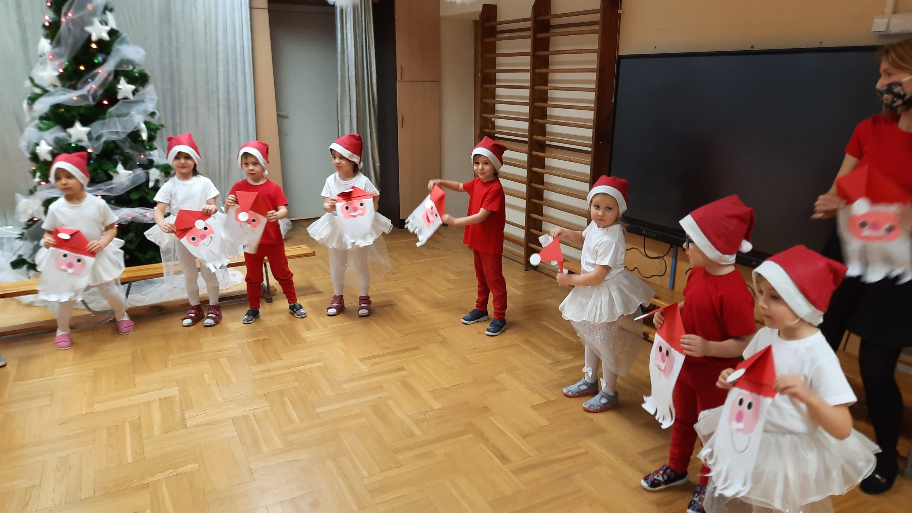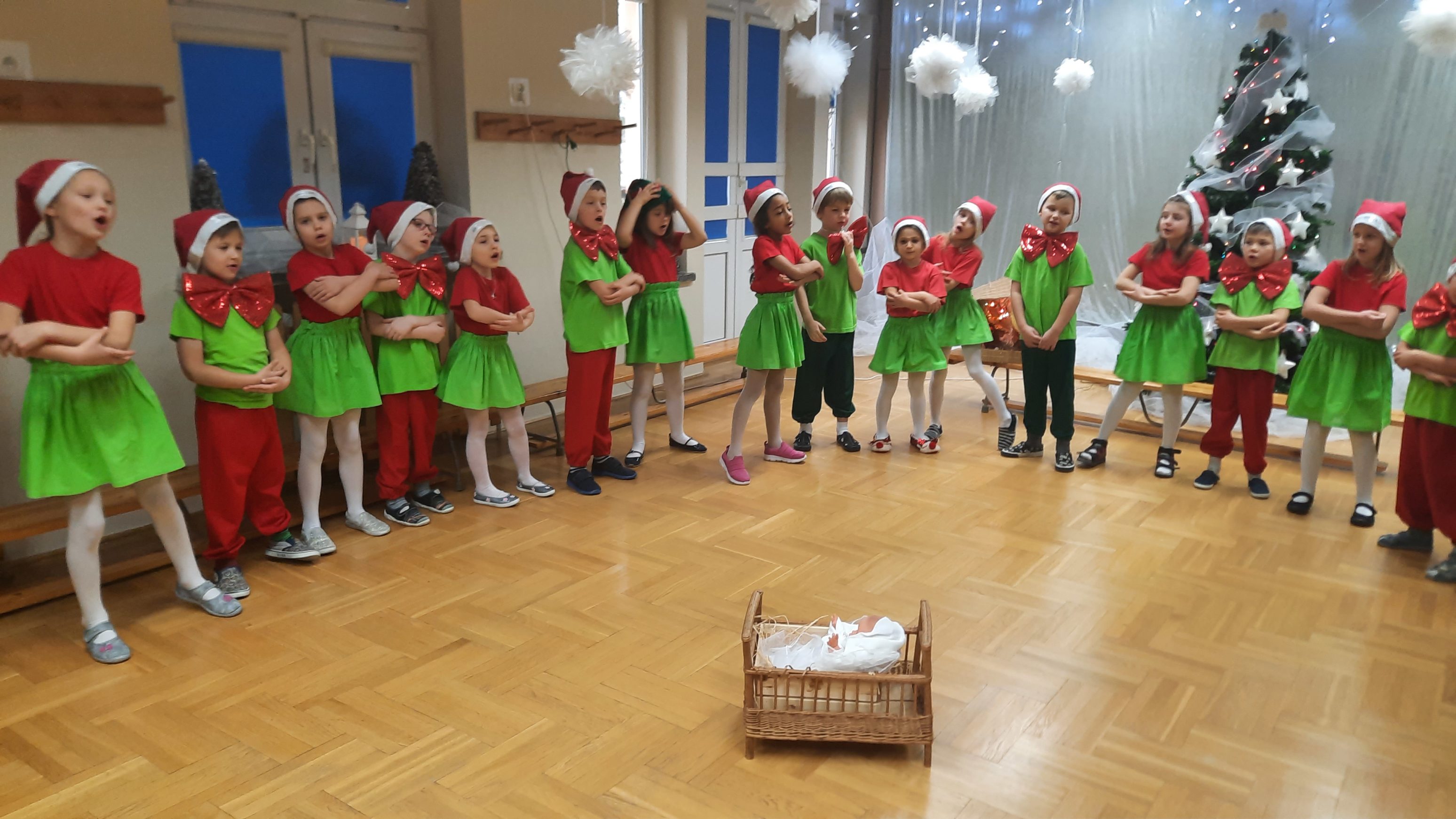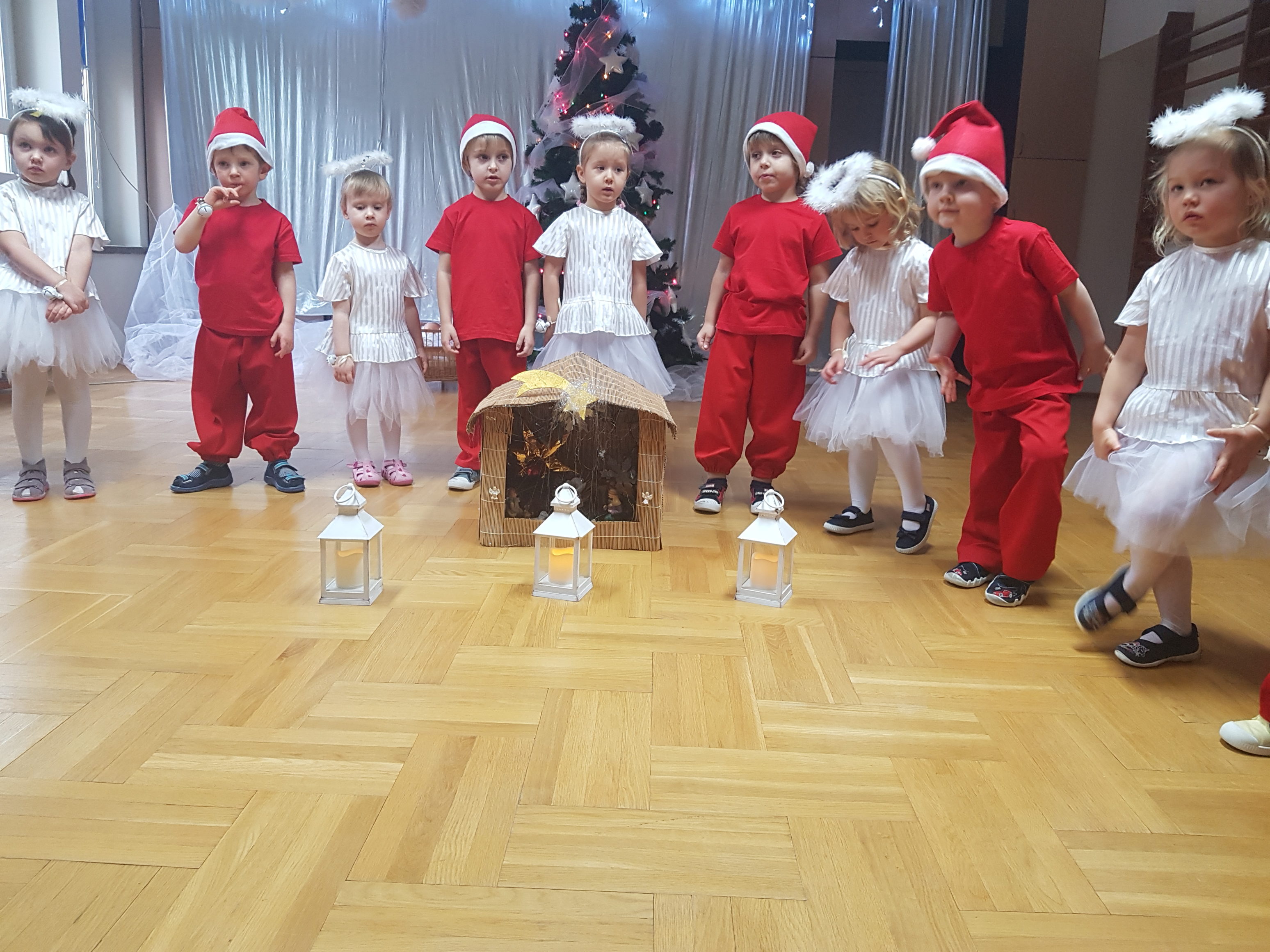 W świąteczny nastrój wprowadził wszystkich KONCERT KOLĘD. W pięknie przystrojonej sali pięknie ubrane dzieci zaprezentowały piosenki, tańce i wiersze o tematyce bożonarodzeniowej oraz oczywiście kolędy.