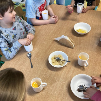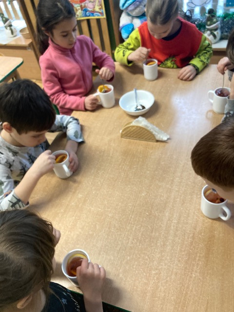 W dniu 28.01 odbyły się w naszym przedszkolu warsztaty kulinarne pt  „Aromatyczne, zimowe smaki”. Podczas zajęć przedszkolaki z grupy III i IV  poszerzyły  wiadomości na temat zdrowego odżywiania się i komponowania zdrowej rozgrzewającej herbatki.