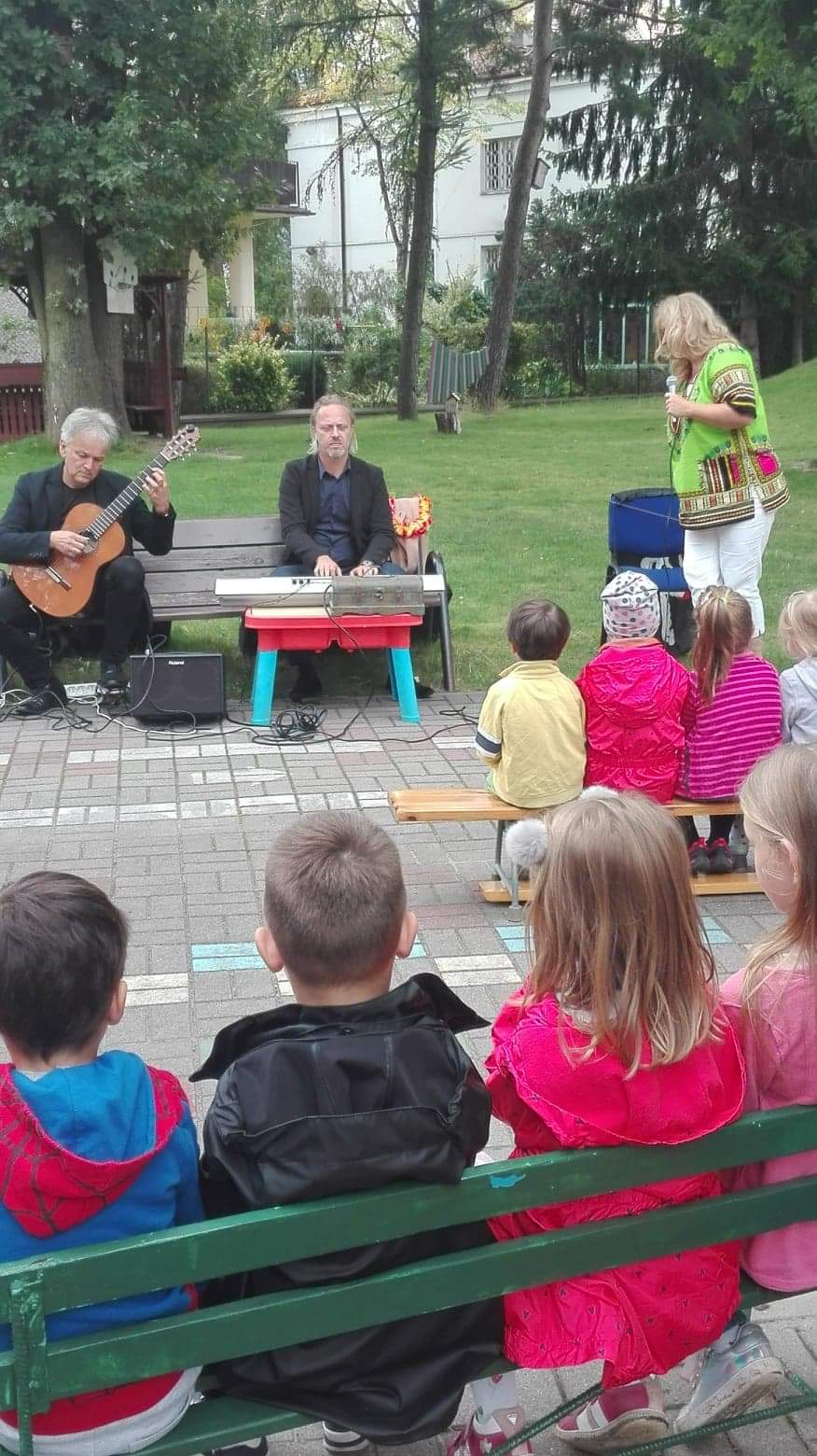 Dnia 7 września odbył się w naszym przedszkolu koncert muzyczny ,,Kuferek pełen wakacyjnych wspomnień”. Koncert odbył się w ogrodzie przedszkolnym. Dzieci poznały budowę i brzmienie gitary klasycznej. Słuchały także ukulele.