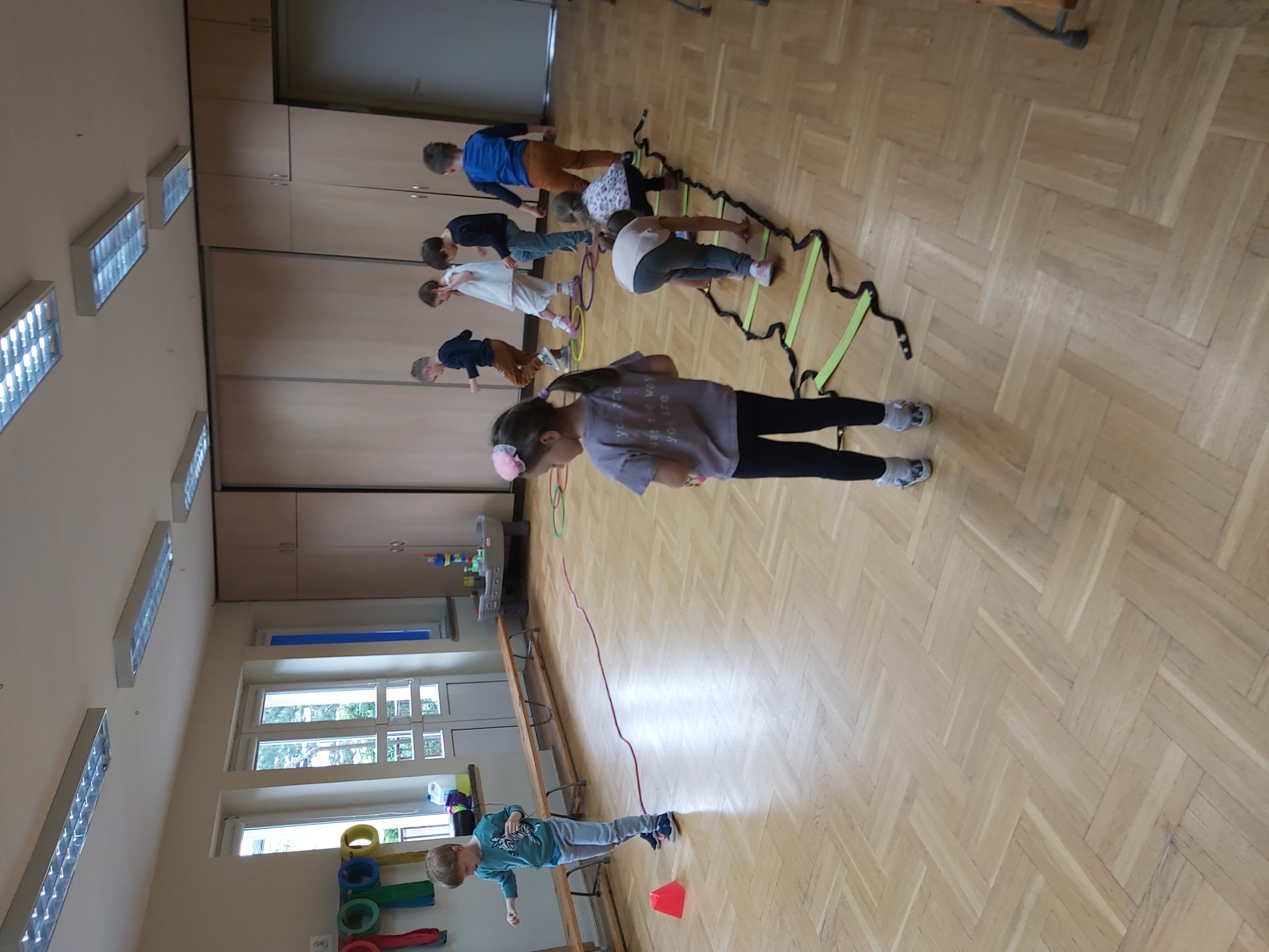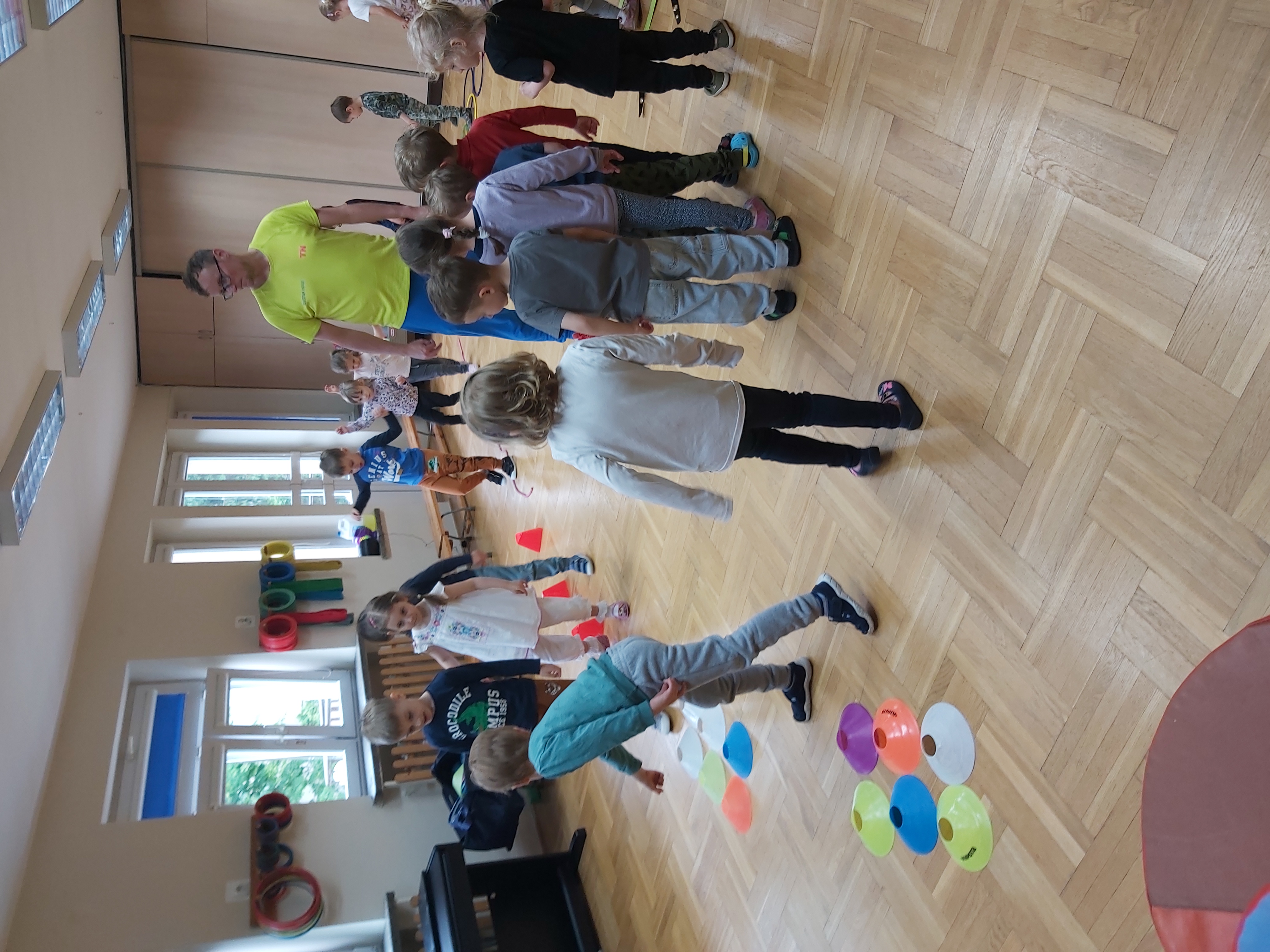 W czwartek przedszkolaki uczestniczyły w zabawach sportowych i konkursach zręcznościowych z panem Tomkiem - trenerem sportowym. Sprawnie pokonywały przygotowane tory przeszkód oraz utrwalały zasady gier zespołowych. Pamiątką tego dnia były kolorowe breloczki.