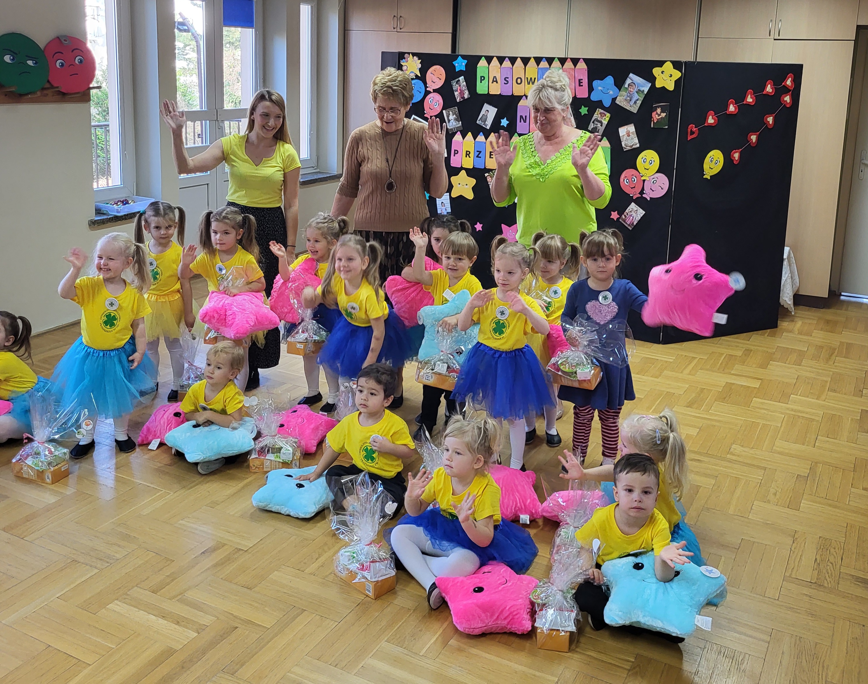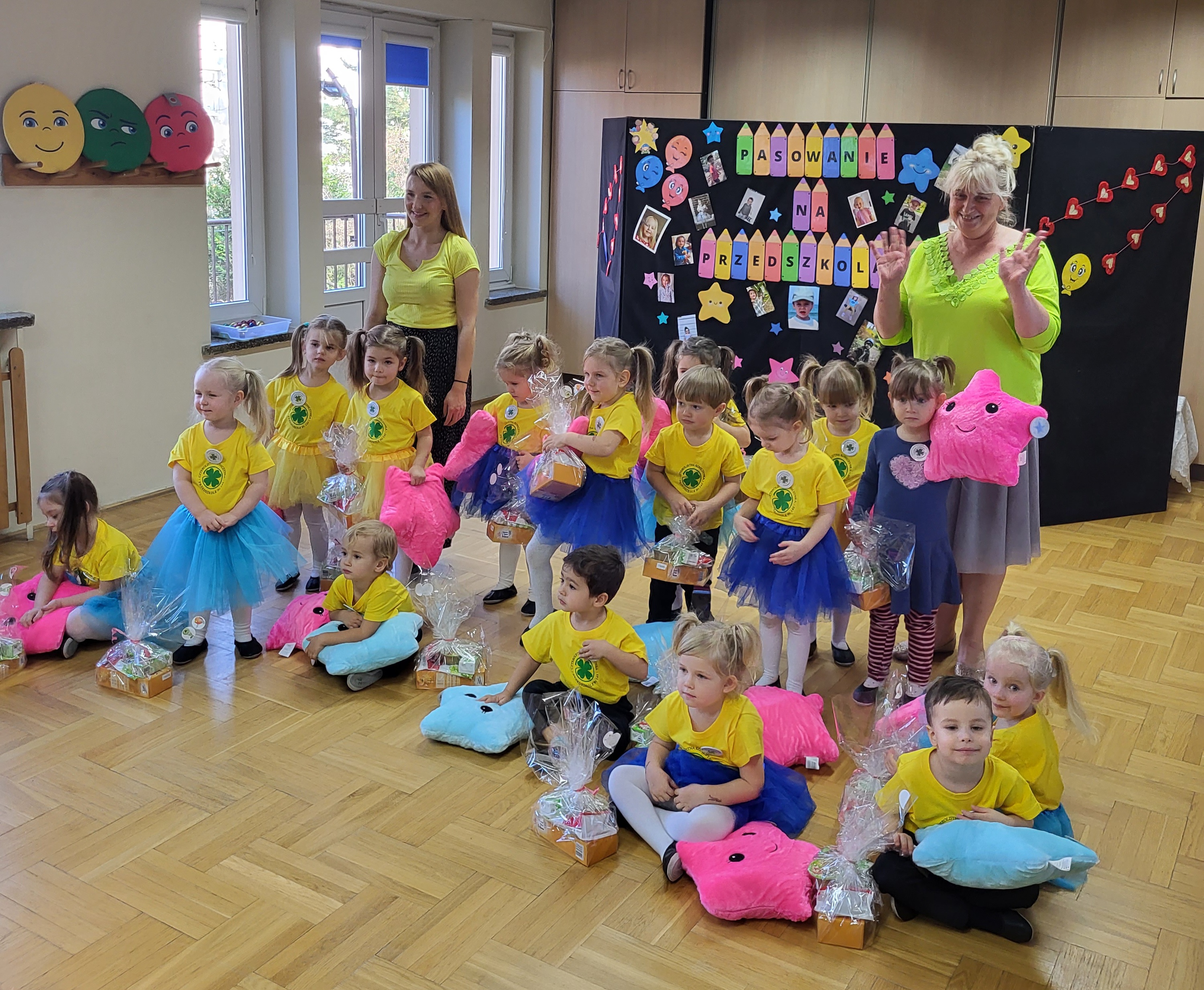 Specjalny strój, wystrój sali podkreśliły doniosłość tego wydarzenia. Gwiazdki zaprezentowały swoim rodzicom piosenki i wiersze, których się nauczyły. Pani Dyrektor za pomocą „Czarodziejskiego ołówka” dokonała uroczystego pasowania. Dopełnieniem uroczystości były prezenty. Był to dzień pełen miłych wrażeń ??.