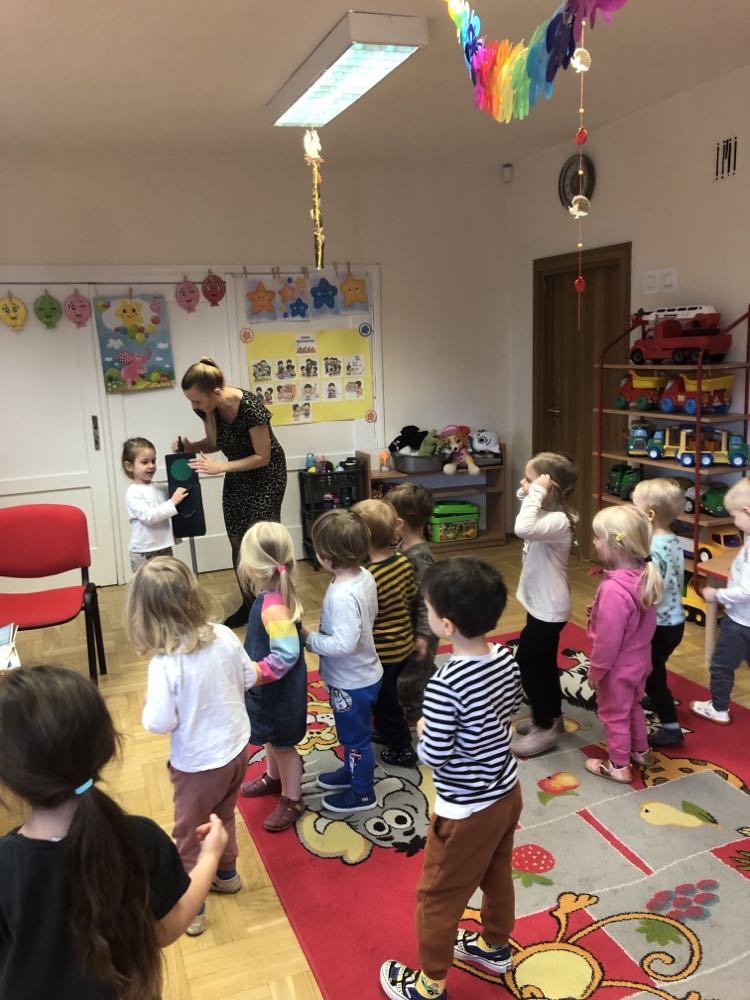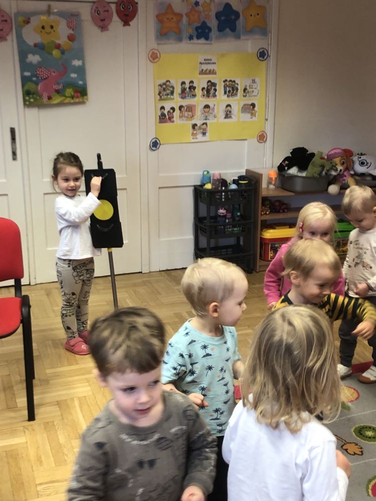 Tego dnia dzieci poznały różnice między sygnalizacją świetlną dla samochodów, a sygnalizacją dla pieszych oraz znaczenia kolorów. Poradziły sobie z tym bardzo dobrze, nie zabrakło również zabaw ruchowych ?.
