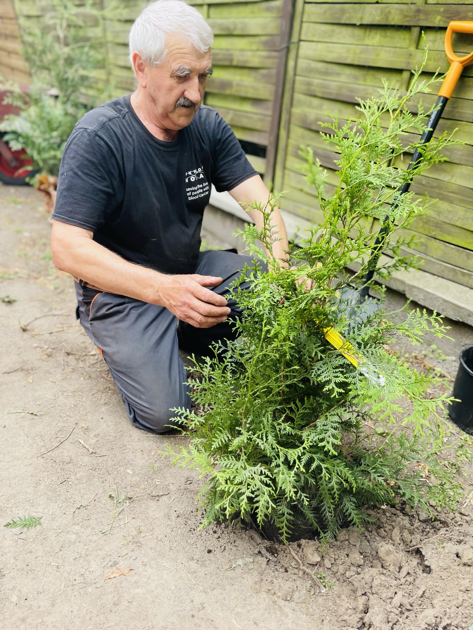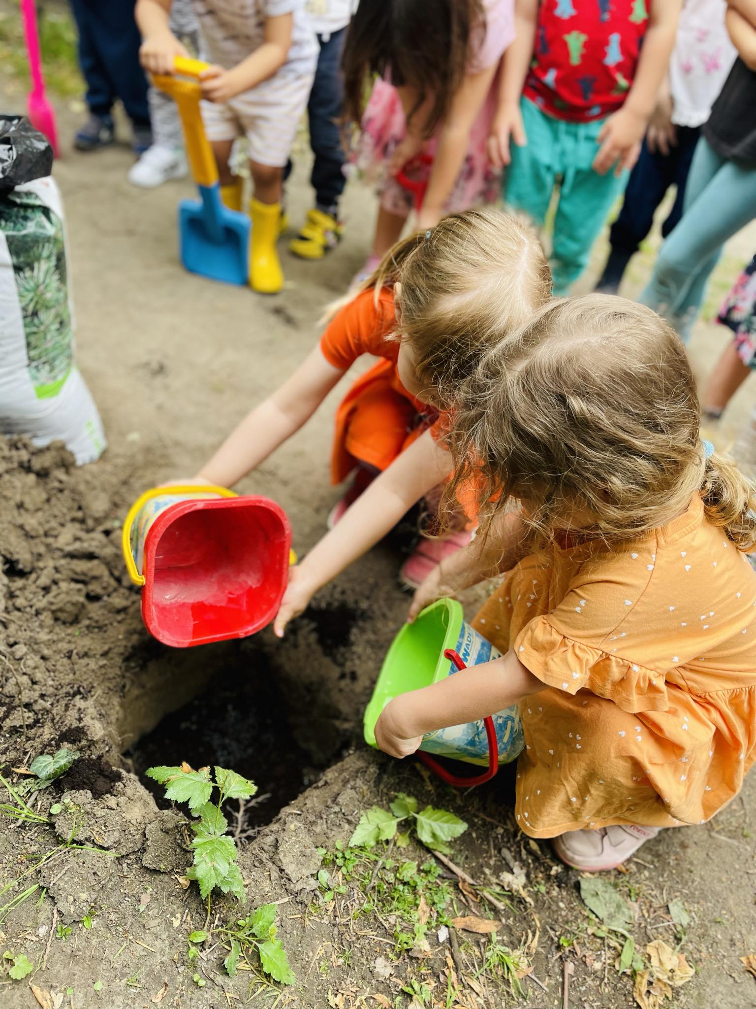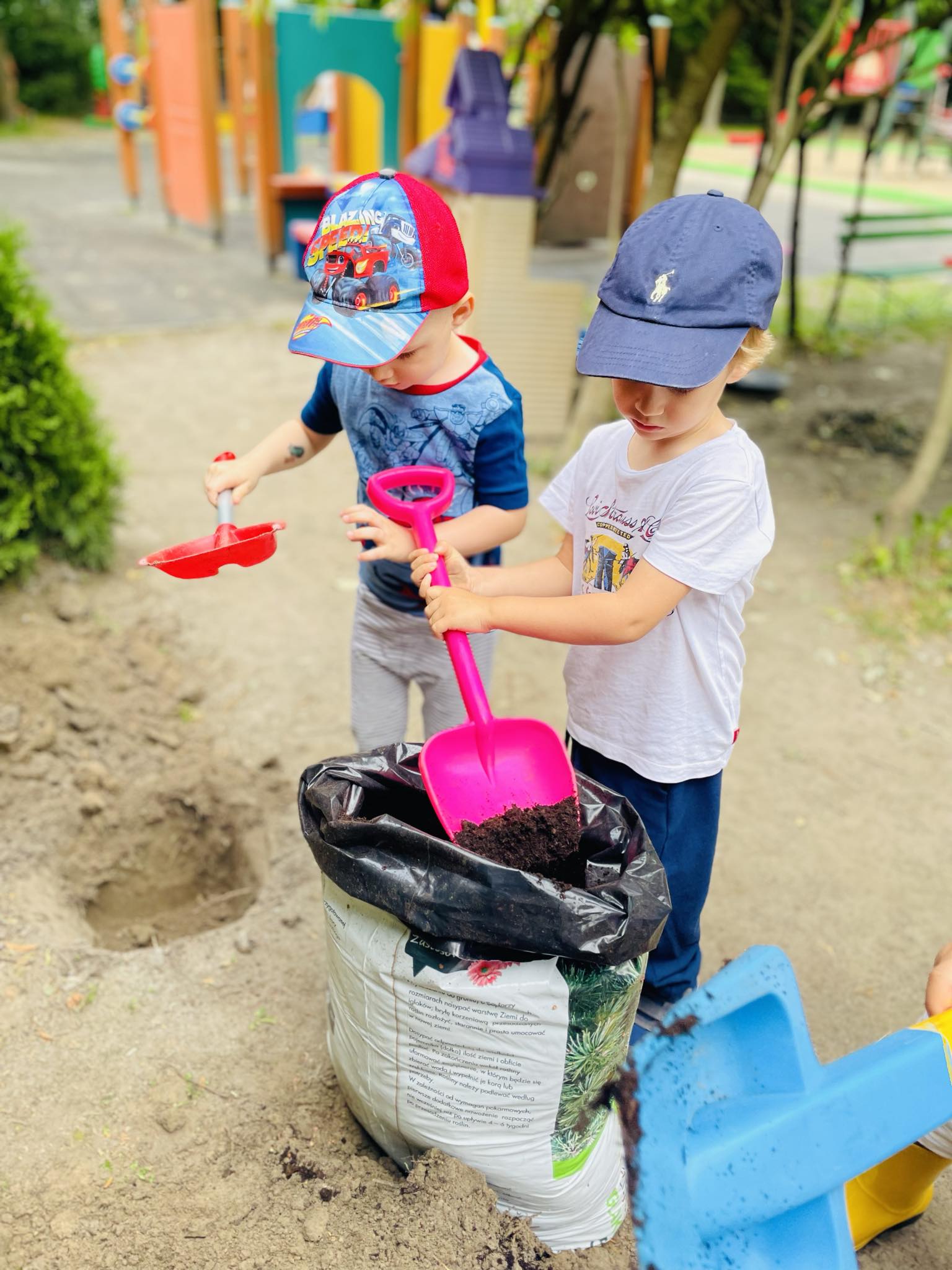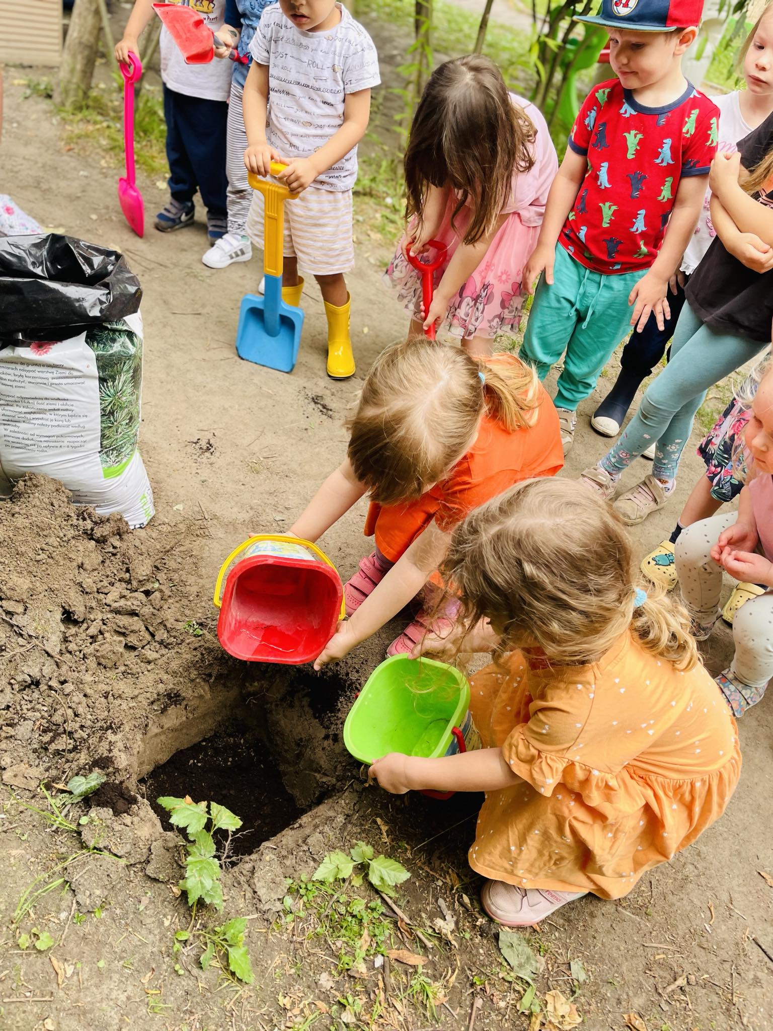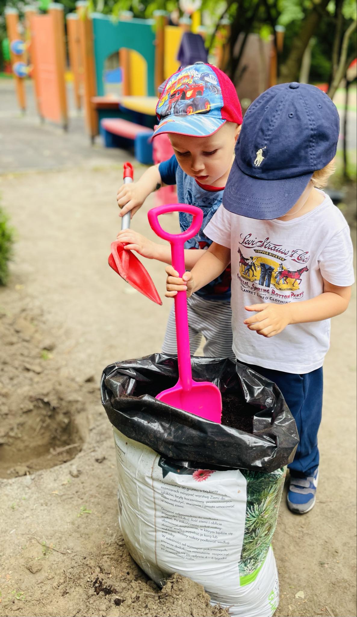 Dzięki uprzejmości rodziców nasza grupa otrzymała własną tuję do posadzenia w ogrodzie przedszkolnym ?. Dzieci dowiedziały się jak powinno się sadzić krzewy, co jest nam do tego potrzebne, a także w jaki sposób się je potem pielęgnuje ?.