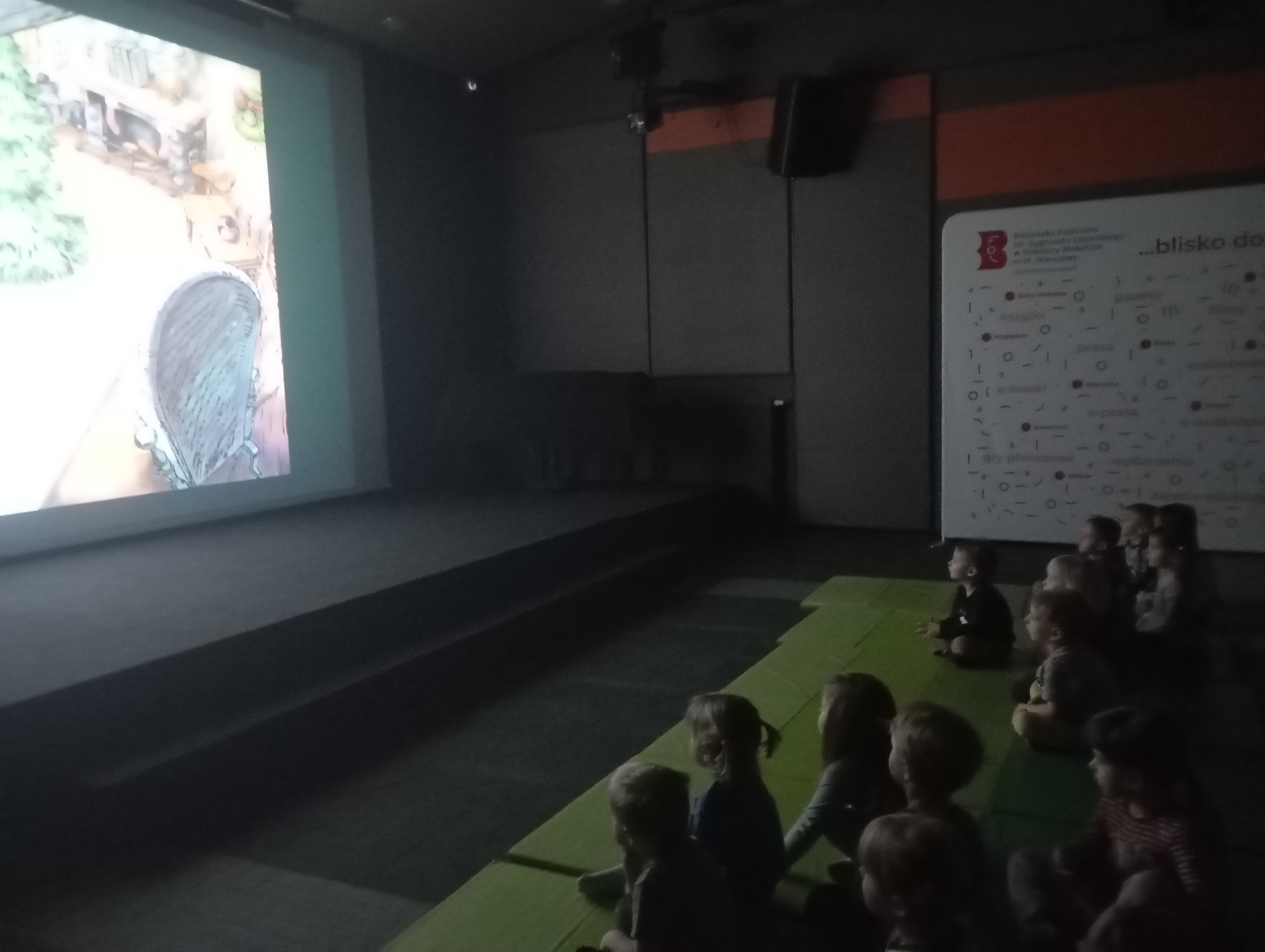 We wtorek 10 grudnia Krasnoludki odwiedziły Bibliotekę przy ulicy Tynieckiej. W "Kinie za rogiem" obejrzały na wielkim ekranie świąteczną bajkę: "Kubuś Puchatek - Puchatkowego Nowego Roku". Wszyscy poczuli świąteczny nastrój.