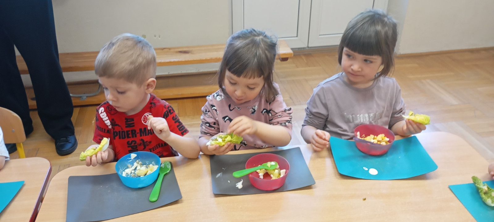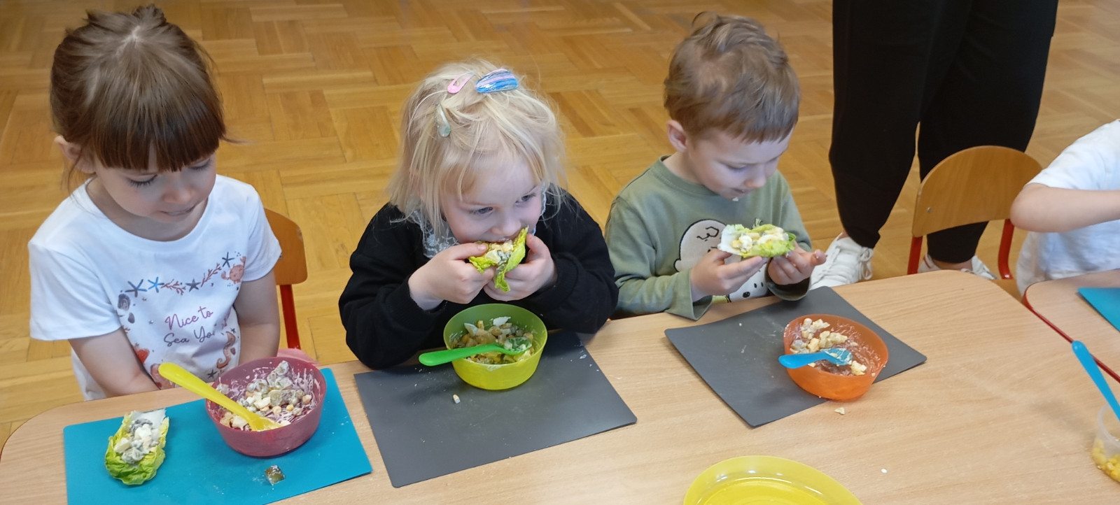 Dnia 13 maja odbyły się warsztaty kulinarne "Sałata rzymska-łódeczki". Samodzielnie przygotowane danie smakowało nam wyśmienicie!