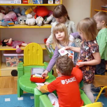 Dzisiaj dzieci uczyły się robić zakupy - bawiły się w zabawę tematyczną: "Robimy zakupy".