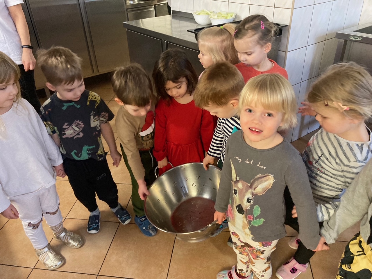 WYCIECZKA DO KUCHNI „WIZYTA W KUCHNI – KUCHENNE TAJEMNICE” – zabawa dydaktyczna - zwiedzanie kuchni przedszkolnej podczas przyrządzania produktów na obiad. Zwrócenie uwagi na sprzęt i jego wielkość w kuchni przedszkolnej oraz domowej.