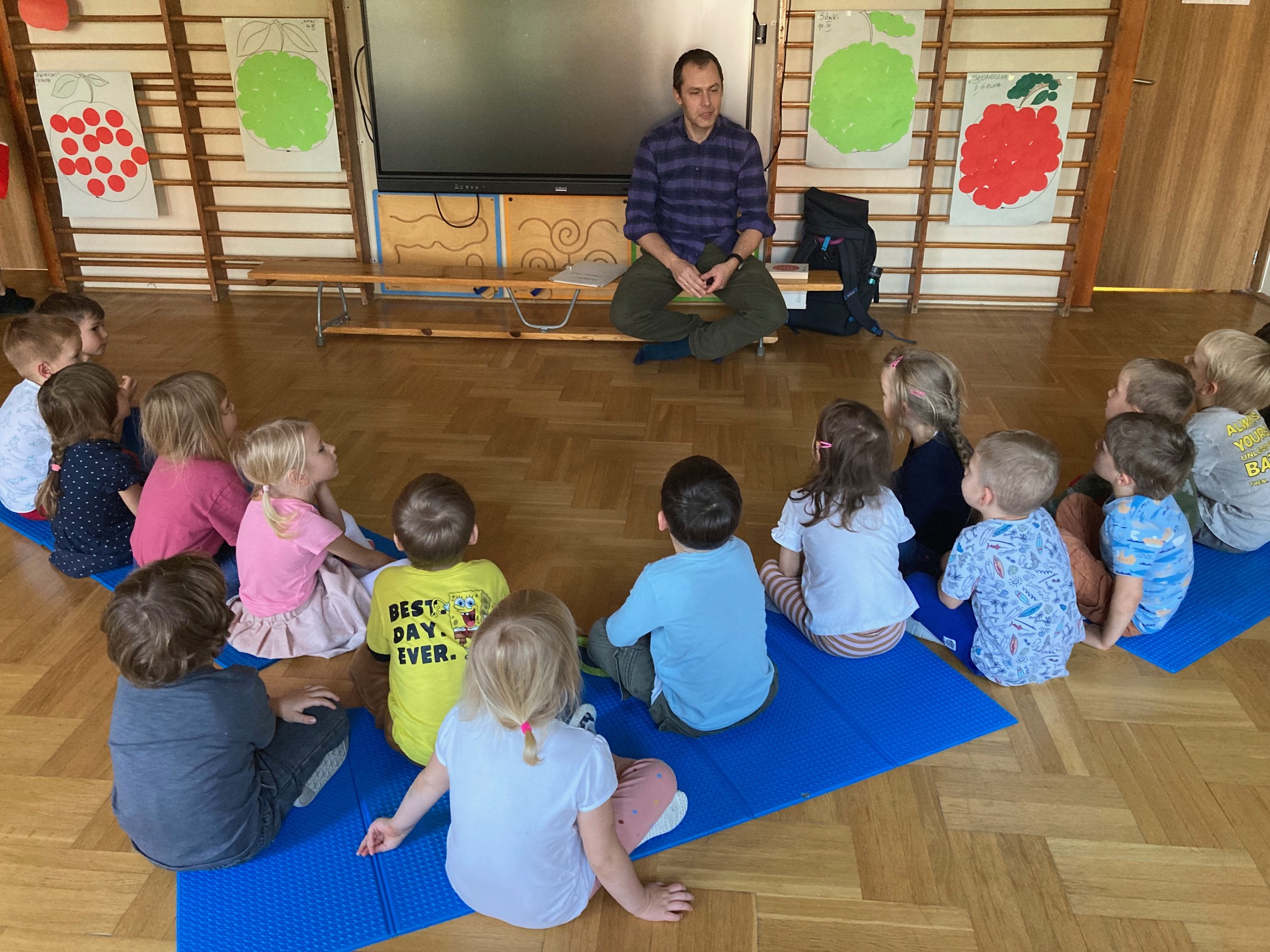 Dziękujemy tacie Hani za rozpoczęcie akcji ,,Cała Polska czyta dzieciom" i zachęcamy pozostałych rodziców do wzięcia w niej udziału. ( kartka z terminami do zapisywania się na czytanie lub prezentację zawodów wisi na szafce w szatni Słoneczek ).