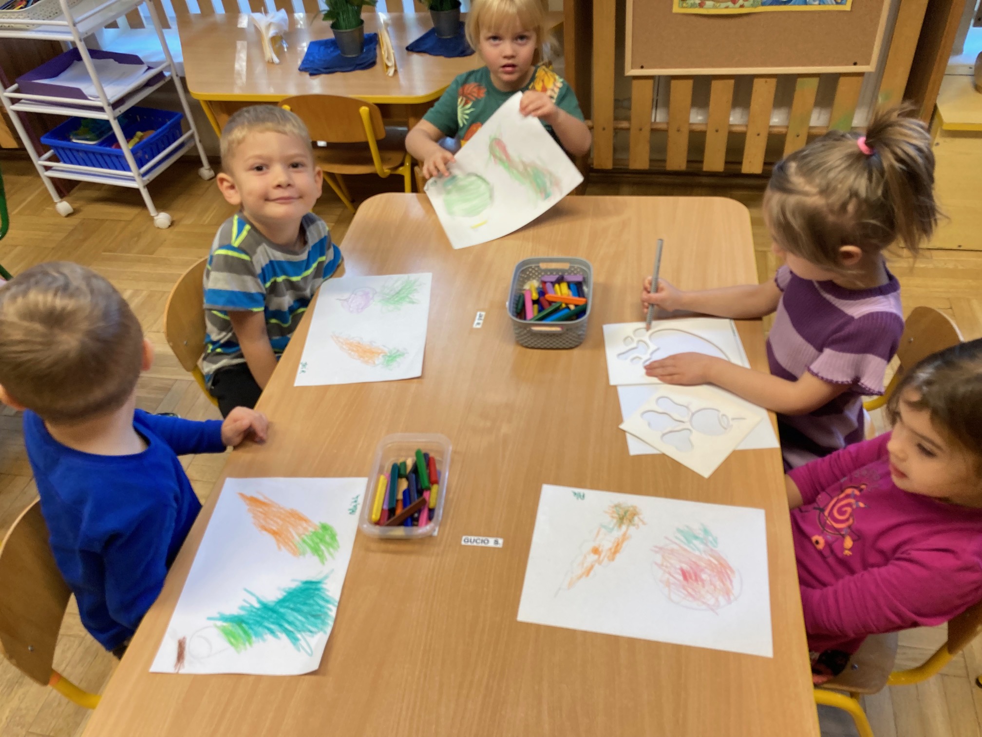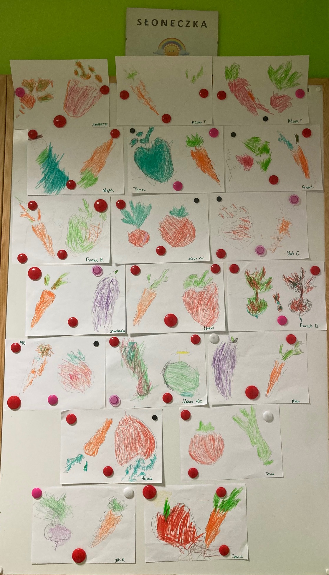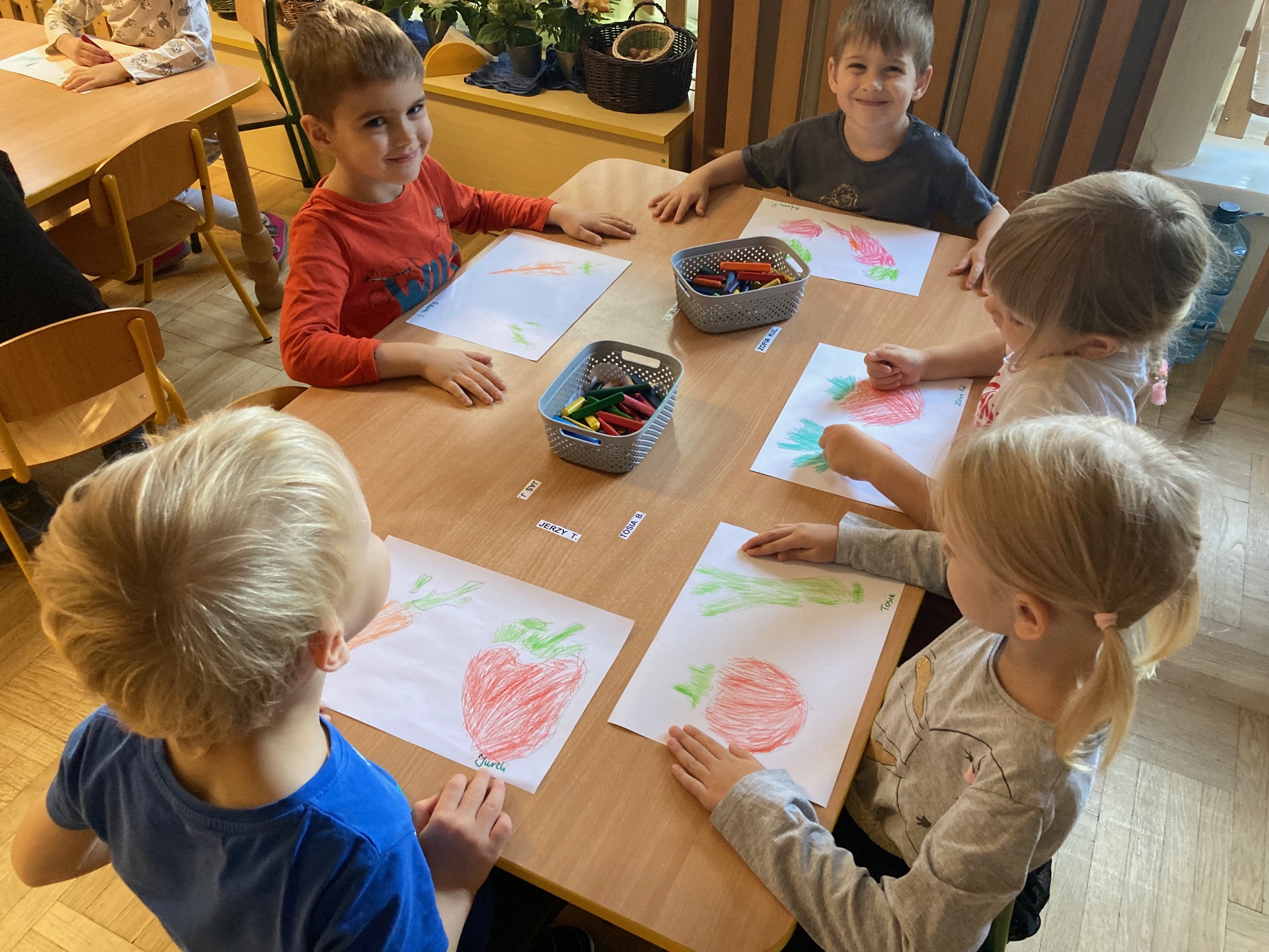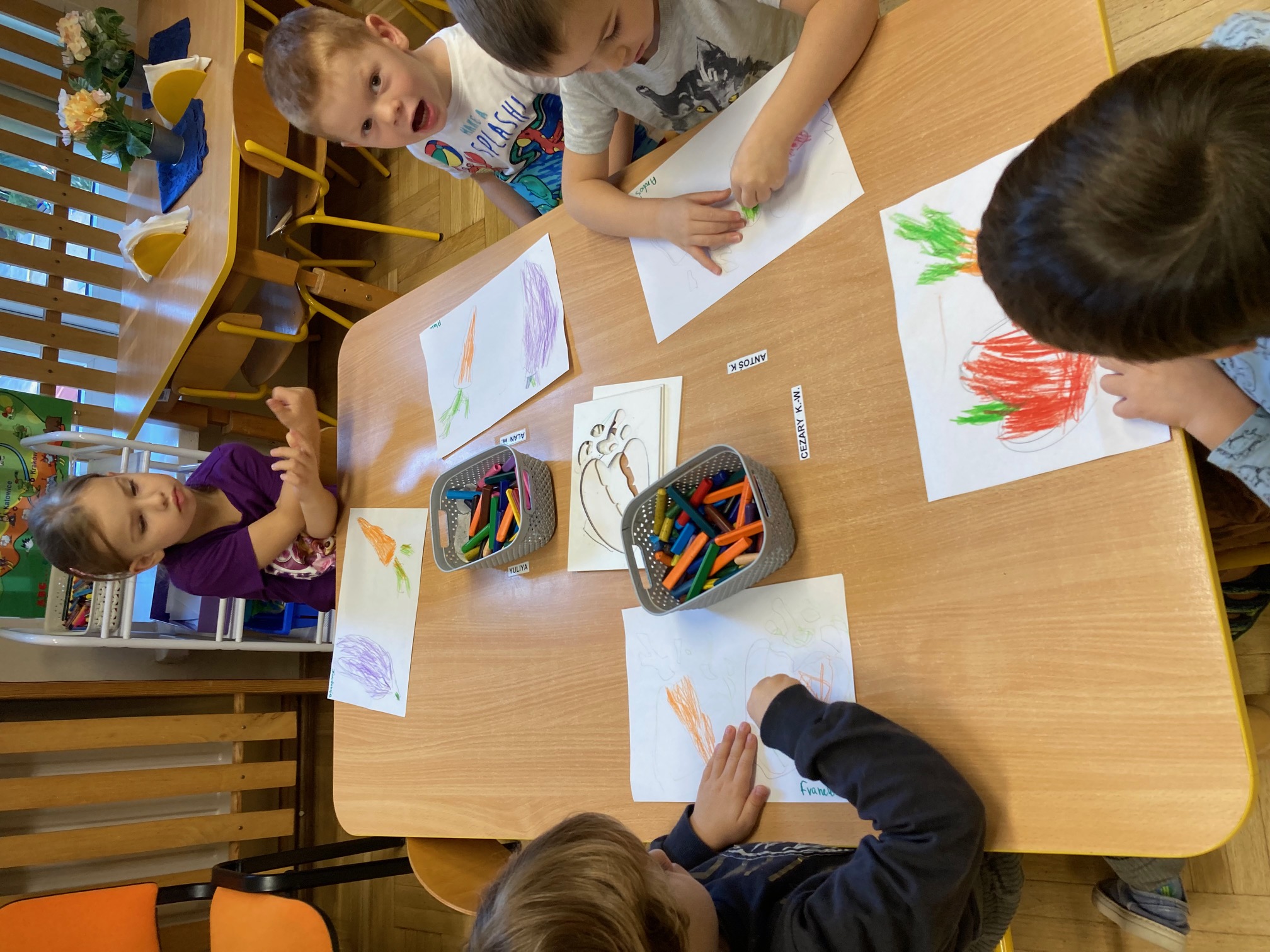 Utrwalanie nazw, kształtu i koloru warzyw. Doskonalenie czynności manualnych i grafomotorycznych - odrysowywanie wybranych warzyw i kolorowanie zgodnie z obserwacją z natury.